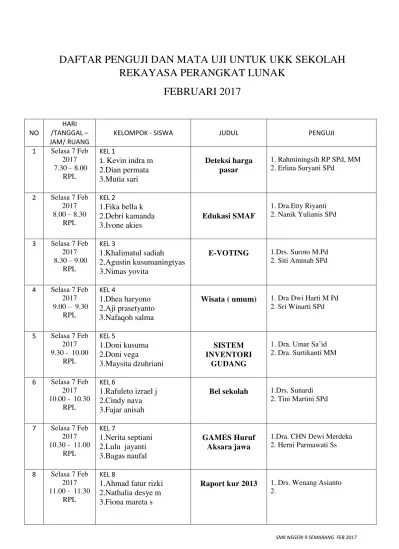 Skema kkni level ii pada kompetensi keahlian rekayasa perangkat lunak dapat. Kamis, 10 maret 2016 smk mutiara ilmu melaksanakan ujian kompetensi eksternal dengan paket keahlian rekayasa perangkat lunak (rpl) yang . Untuk sekolah kami sendiri dilaksanakan pada hari ini hingga 2 hari ke depan yaitu tanggal 22 . Ukk rpl tahun ini terdiri dari 3 paket soal. Tuntutan kebutuhan industri di bidang rekayasa perangkat lunak menghendaki tenaga. Itu tak lain untuk memudahkan para siswa smk program keahlian rpl dalam proses penyusunan proposal ukk yang sedang mereka buat untuk ukk 2016 mendatang. Uji kompetenasi keahlian tahun pelajaran 2016/2017. Smkn 4 banjarmasin melaksanakan ukk pada program keahlian rekayasa perangkat lunak yang berlangsung sejak hari ini, jumat (26/2/2016). Dokumen laporan hasil uji kompetensi keahlian (ukk) praktik tentang poliklinik berbasis aplikasi web. Soal ukk rpl tp 2020/2021 soal ukk rpl paket 1 soal ukk rpl paket 2 soal ukk rpl paket 3 soal ukk rpl. Pada ukk tahun ini, kompetensi keahlian rekayasa perangkat lunak mengambil soal ukk paket 1 (satu) berupa pembuatan aplikasi poliklinik . Jurusan rpl (rekayasa perangkat lunak) 3 paket (web base application / desktop . Sektor operator komputer, dan skkni nomor 282 tahun 2016 tentang.